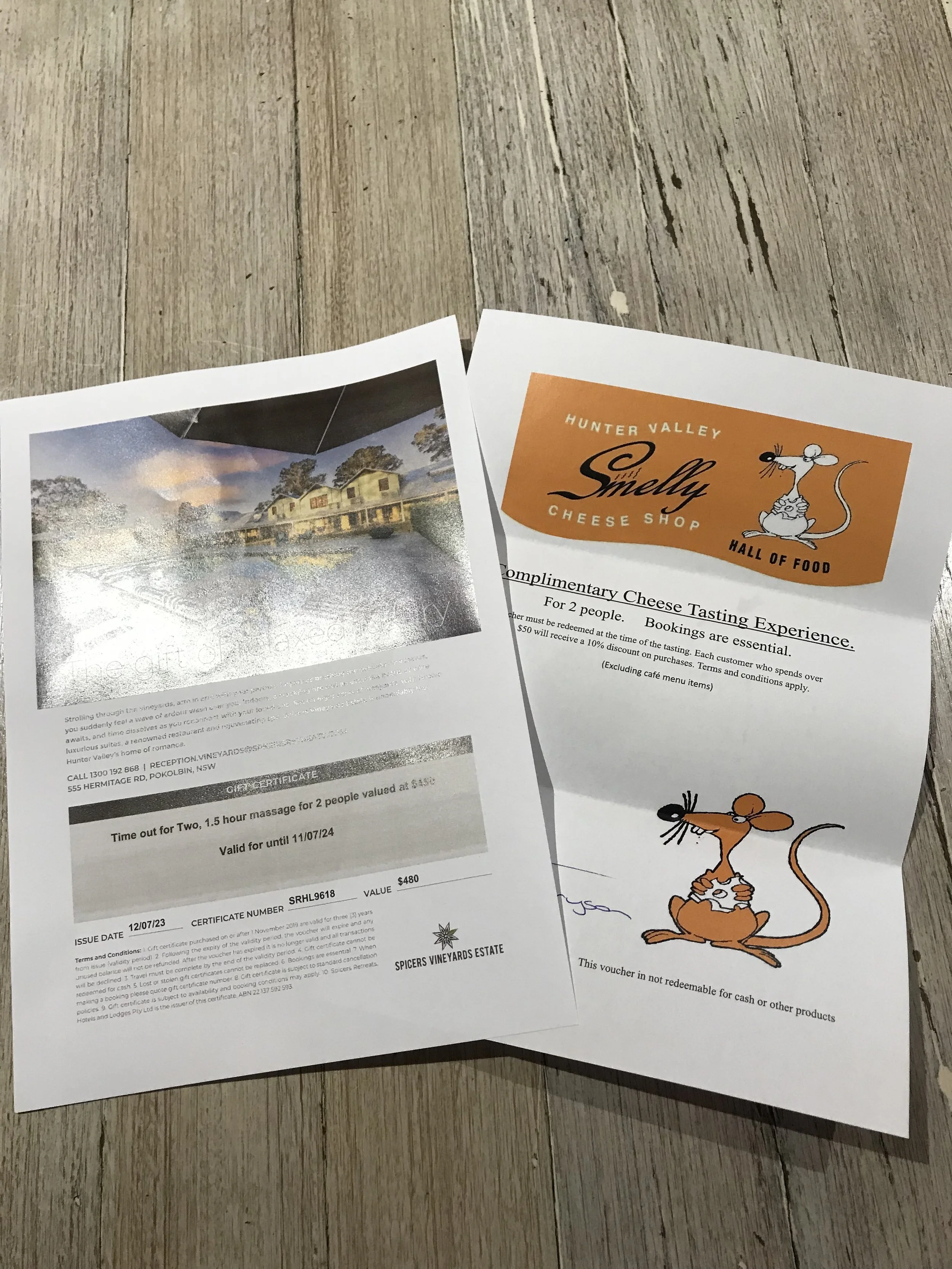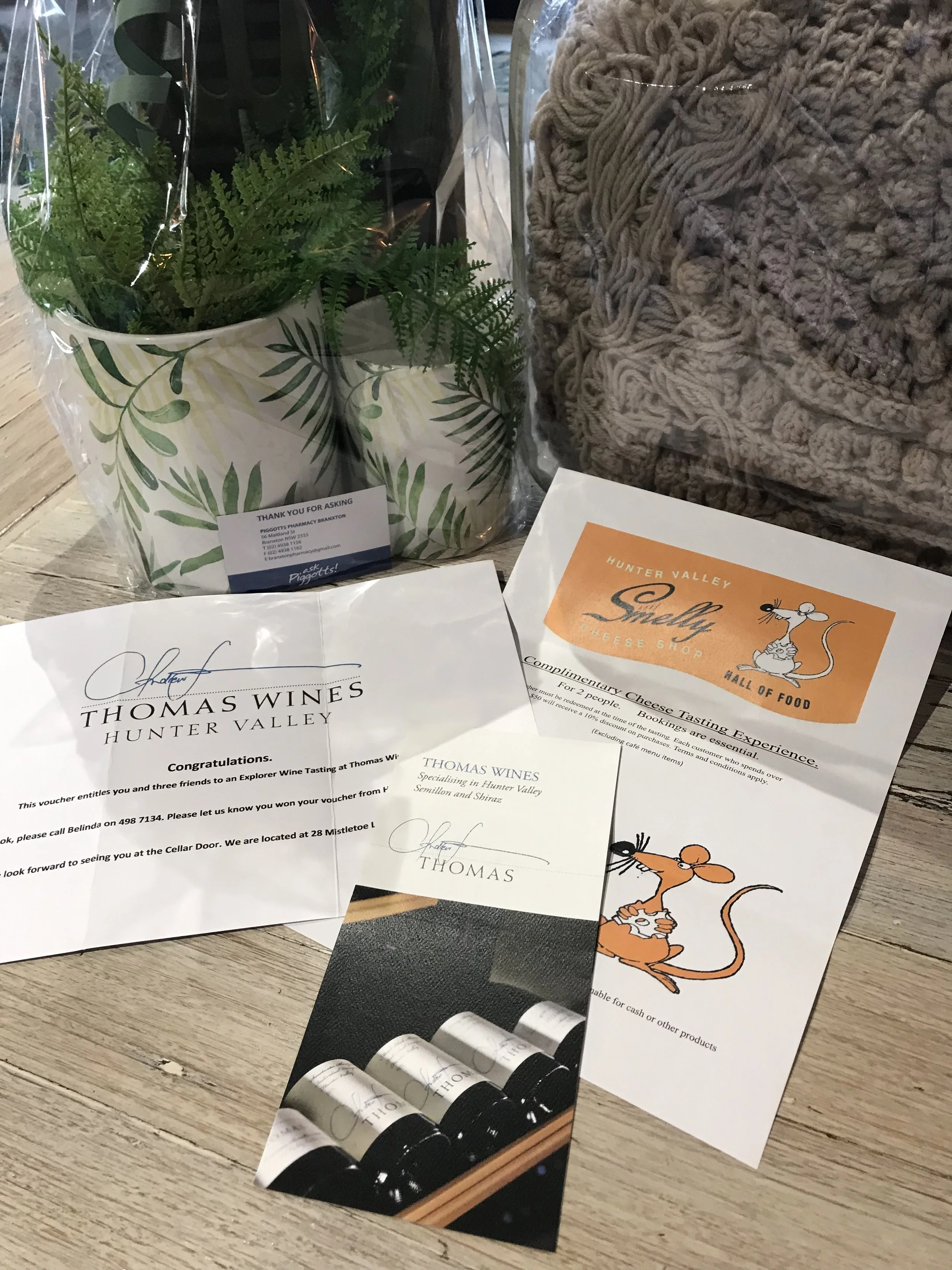 Hamper from the team at Branxton Pharmacy plus a homemade throw by Marilyn Star plus cheese tasting for 4 at the amazing The Smelly Cheese Shop plus a wine tasting for 4 at Thomas wines