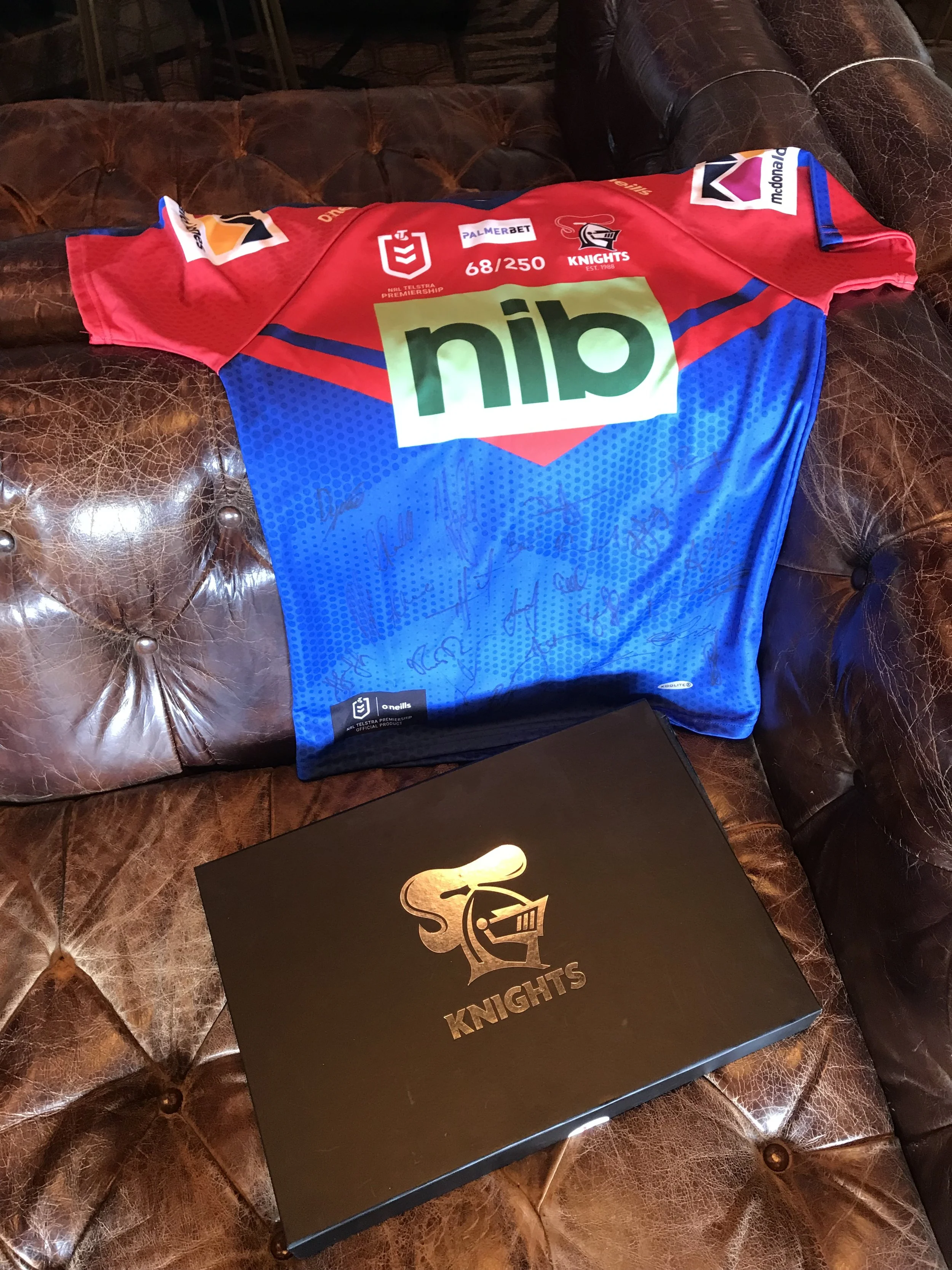 2023 NSW jersey framed and signed by NSW newcomer, Raiders player and local legend Hudson Young