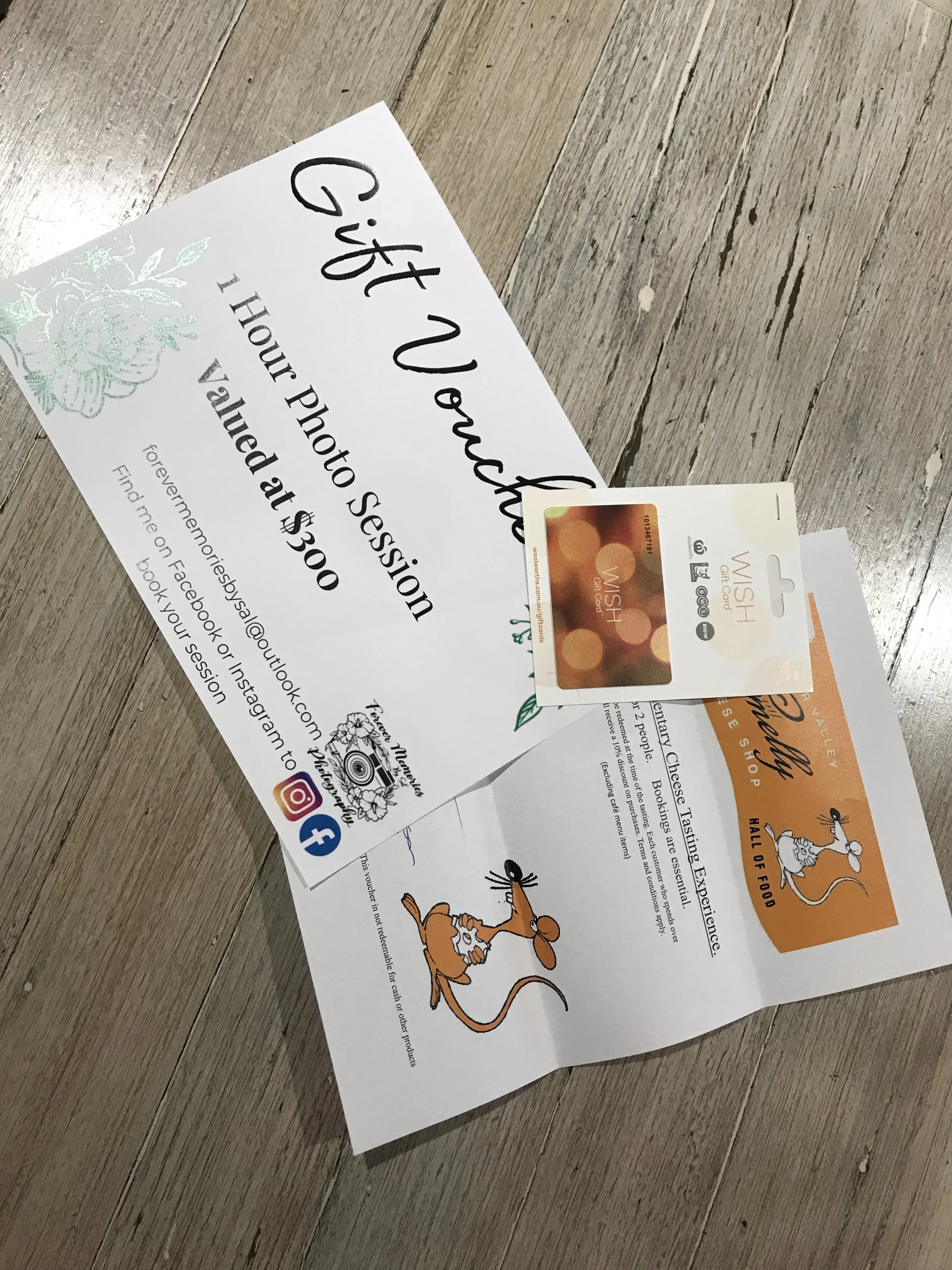 Capture those moments with Forever Memories by Sal voucher plus a $100 Woolworths voucher and a Cheese voucher from The Smelly Cheese Shop
